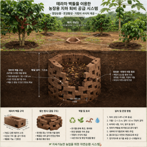 테라차 매설형 퇴비 공급 시스템은 바이오차 기반의 테라차 벽돌을 활용하여 토양 내부에 퇴비 저장 및 영양분 공급 구조를 형성하는 친환경 순환형 농업 기술입니다.
