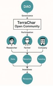 Cộng đồng mở TerraChar kết hợp đổi mới biochar (gạch carbon từ vỏ trấu) với công nghệ Web 3.0 (DAO, blockchain, hợp đồng thông minh) để mang lại: